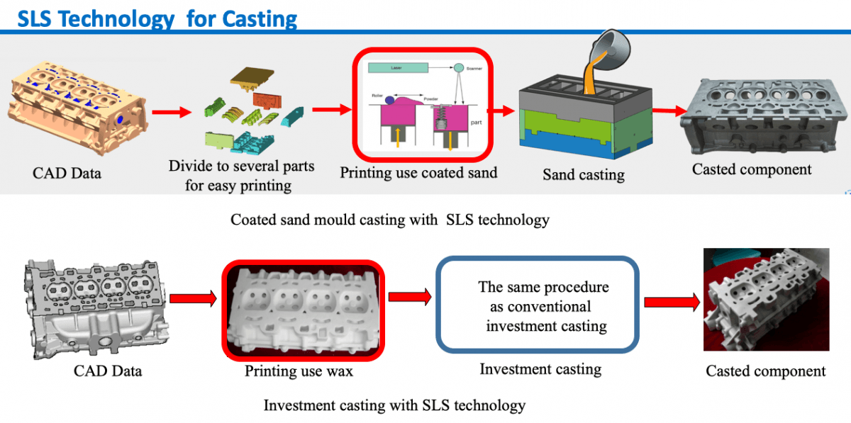 EP-C5050 /EP-C7250 adopts laser sintering technology, and uses resin sand and disappearable fired mold as moulding materials. Combined with casting technology, EP-C5050 /EP-C7250 has large forming space and can rapidly cast the parts with complex structure, like engine cylinder block, cylinder head, turbine, impeller and more.