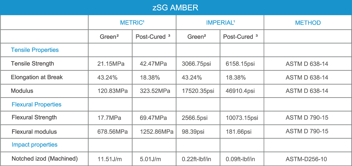 - Data was obtained form green parts, printed using, 100 μm, Clear settings and post-cured with 600 mW/cm2 of 405 nm LED light at 25℃ for 10 min.